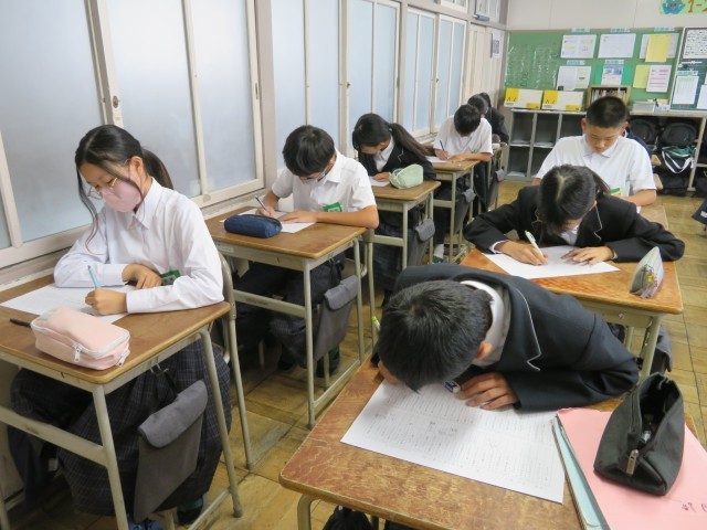 1年生の国語の授業のようすです。漢字テストに挑戦していました、しっかりと覚えてきたことを表現することができたかな。不確かだったところはしっかりと振り返りをして覚えなおしましょうね。
