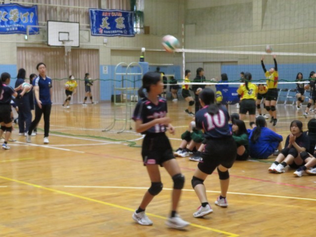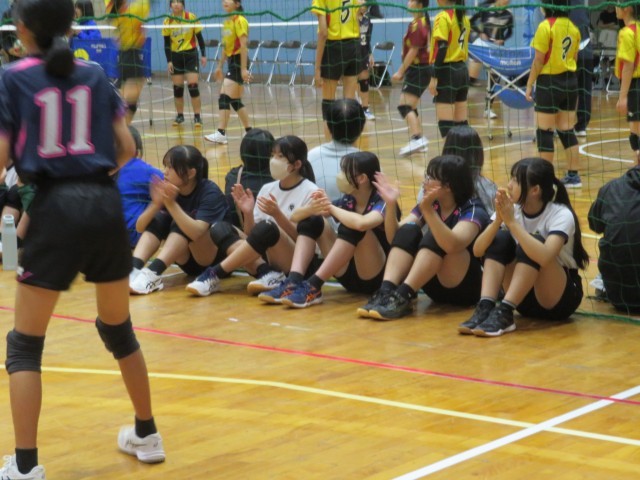 残念ながら接戦をものにすることができませんでしたが、強い心でたくましくプレーを続け、新人大会から大きく成長した姿を見せてくれました。相手の強いサーブやスパイクをものともせず、きっちり上げてラリーを続ける場面がたくさんあり、手に汗握る試合でした。