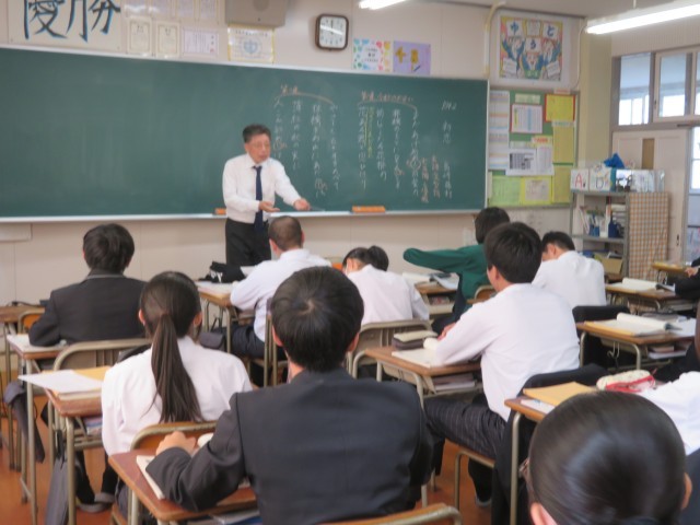 3年生の国語の授業のようすです。島崎藤村の作品「初恋」について学んでいました。作品を味わいながら、文語定型詩の特徴について知ることができましたね。