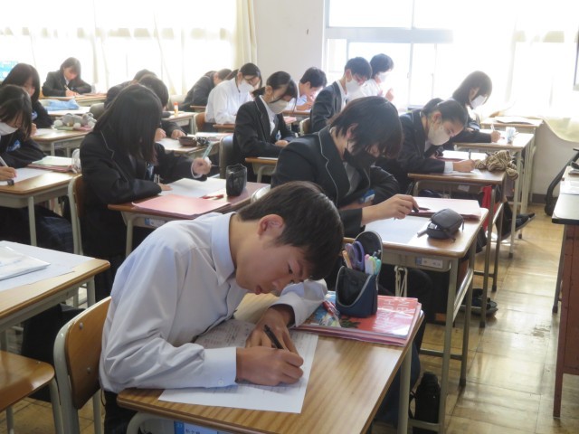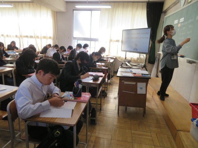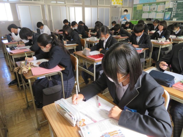 2年生の英語の授業のようすです。「比較級・最上級を理解しよう」というめあてで学習を進めていました。たくさん例文を書いて、問題にも挑戦して理解を深めることができましたね。