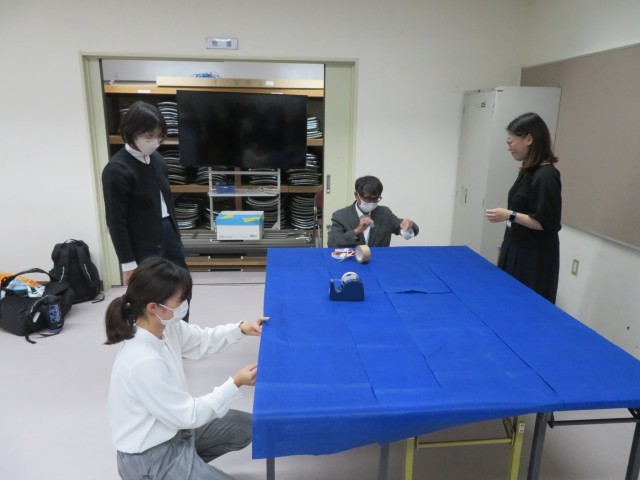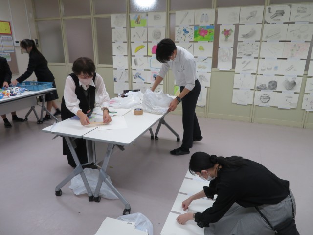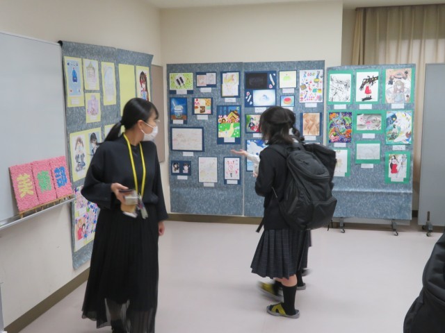 STの後の時間を使って、各学級の代表の生徒と学年の先生たちで、今週30日から開かれる文化作品展の展示準備を行ってくれました。みんなで協力してがんばってくれてありがとう!感謝感謝ですね(^^)/
