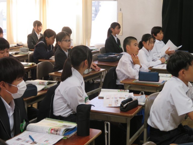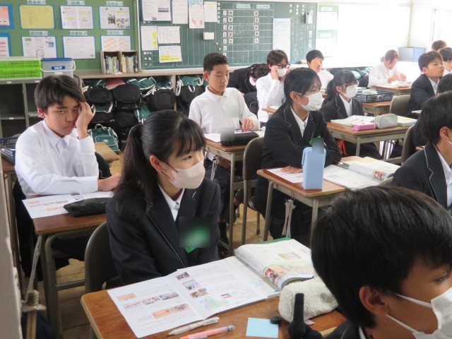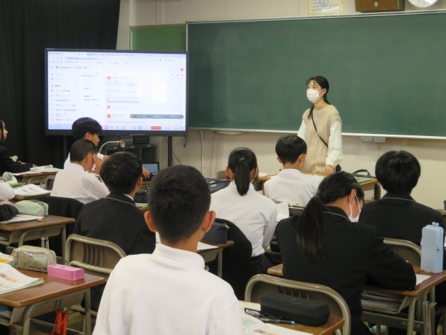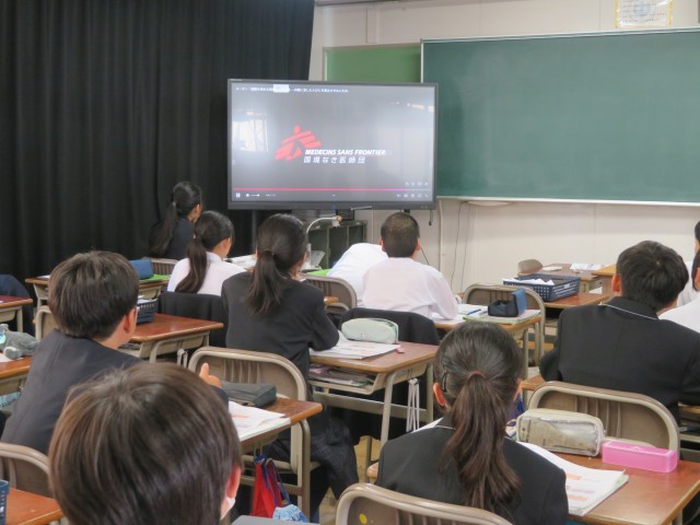 1年生の社会の授業のようすです。国境なき医師団の活動についての動画を見て、世界の課題について考えました。