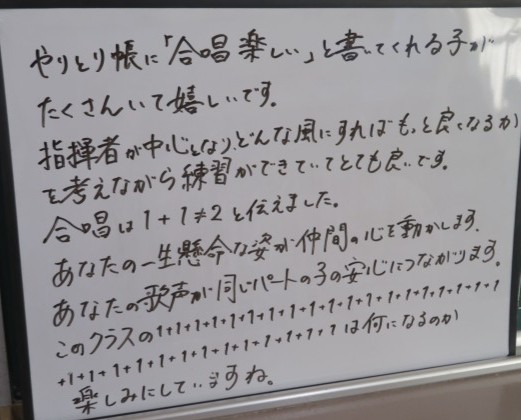 10月28日(火) 合唱が楽しい!【1年黒板メッセージ】