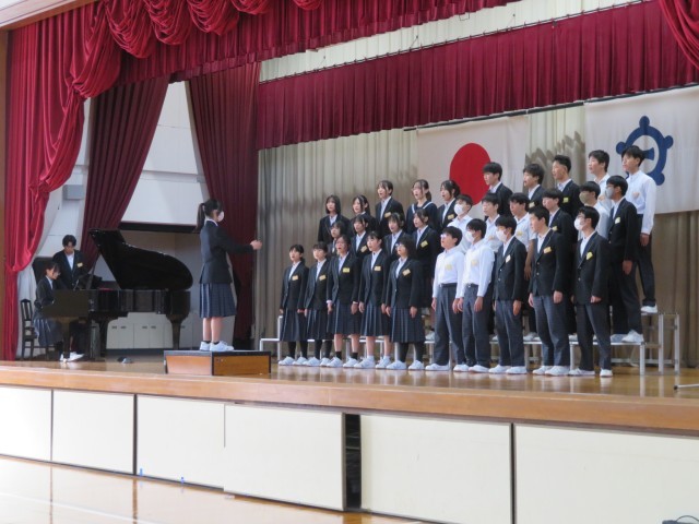 3年生の合唱コンクールの学年練習のようすです。ワンフレーズを歌うこと、舞台への移動の仕方を確認することに取り組んでいました。学年の仲間や先生たちがあたたかく見守る中、思いを込めて歌うことができましたね。緊張があったと思いますが、それも本番に向けてよい経験になります。ベストを尽くせるように、さらに学級の歌声を高めていきましょうね。