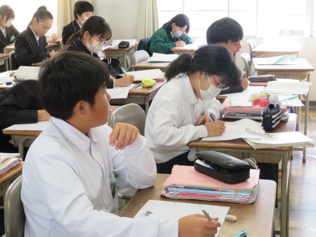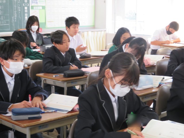 1年生の国語の授業のようすです。三好達治さんの作品「大阿蘇」について、「詩の情景を捉えよう」というめあてで学習を進めていました。