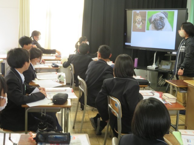 1年生の英語の授業のようすです。「なんて〇〇だろう!」という感嘆の表現を学んでいました。いろんな写真を見て感じたことを、学んだ感嘆の表現で表すことができましたね