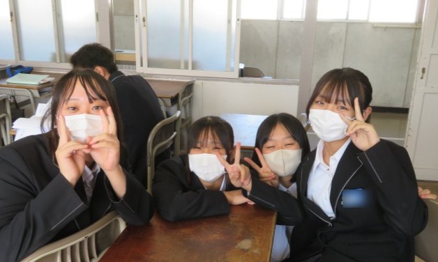 今日の2年生の放課の一コマです。「学校公開が始まりましたので、ぜひ保護者のみなさんに私たちのがんばる様子を見てほしいです」と話してくれながらカメラにおさまってくれました。保護者のみなさんの来校を生徒たちは楽しみにしています!
