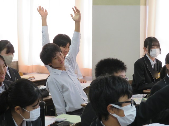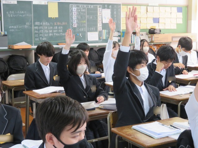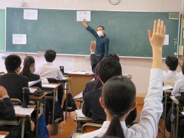 3年生の社会の授業のようすです。「国会、内閣、裁判所の三権はどのような関係にあるのだろう」というめあてで学習を進めていました。