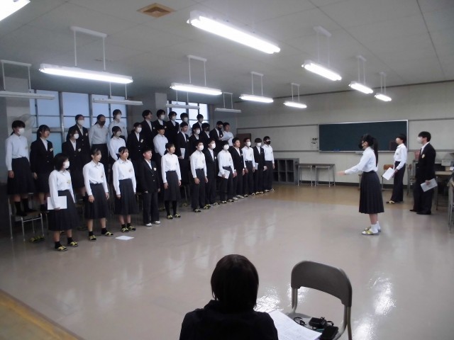 3年生は2日ぶりの合唱練習となりました。いよいよ来週が本番です。各クラスとも工夫を凝らしながら熱心に練習に取り組んでいました。パートリーダーが熱心に指揮を取っているクラスも多く見られ、担任の先生たちの指導にもより熱が入っていました。