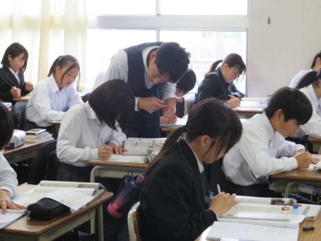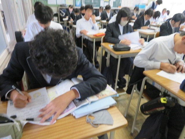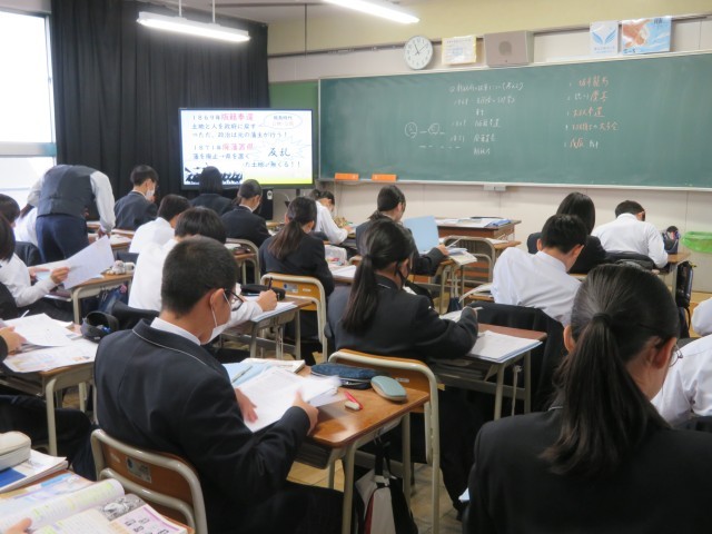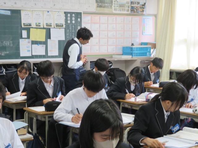 2年生の社会の授業のようすです。五箇条の御誓文や版籍奉還、廃藩置県などについて学んでいました。歴史上の人物も有名どころがたくさん出て激動の時代だということがわかりますね。