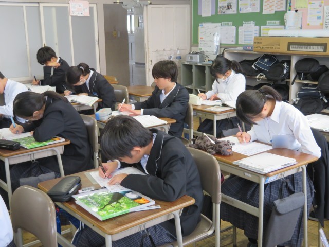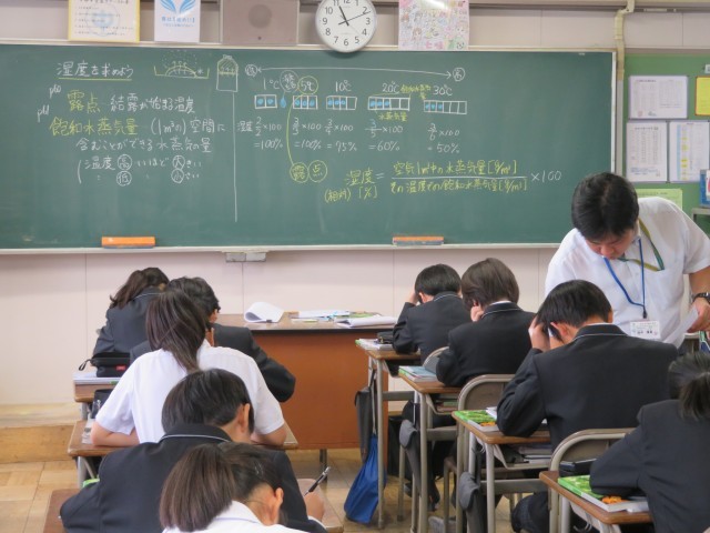 2年生の理科の授業のようすです。「湿度を求めよう」というめあてで学習を進めていました。露点や飽和水蒸気量という言葉の意味も確認することができましたね。