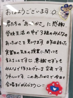 10月31日(金) あったかさに感謝【2年黒板メッセージ】
