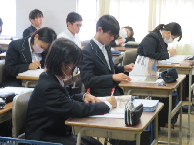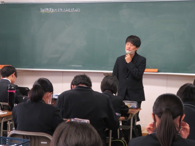 2年生の社会の授業のようすです。「自由民権運動がめざした社会をまとめよう」というめあてで学習を進めていました。