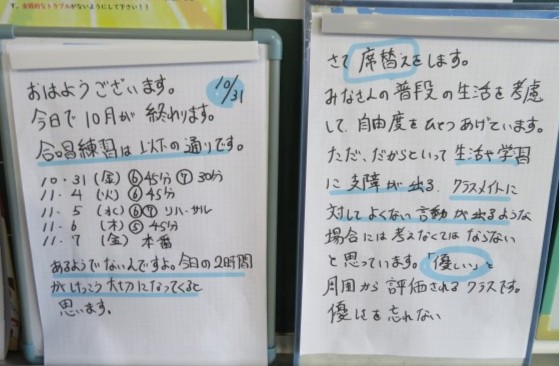 10月31日(金) 「優しさ」をわすれない【2年黒板メッセージ】