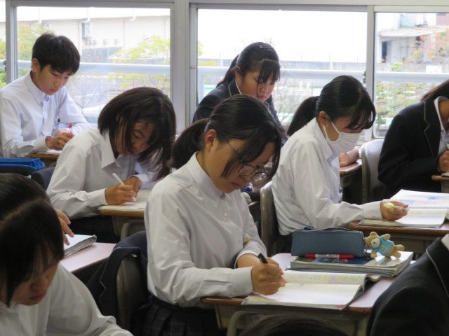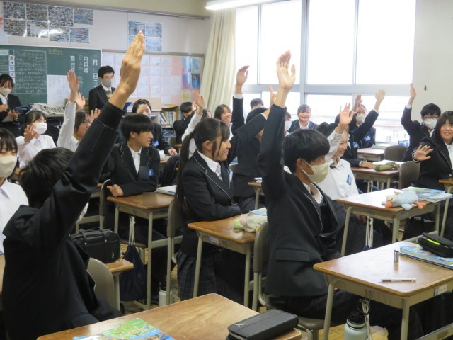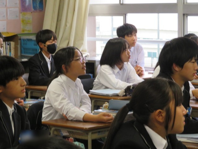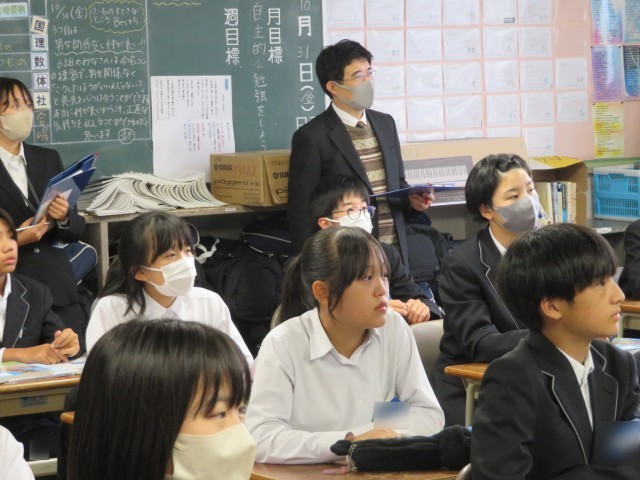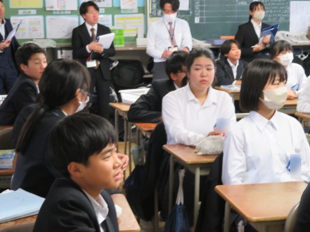 2年生の社会の授業のようすです。教育実習生が指導者となって「三大改革は日本にどのような変化をもたらしたのか考えよう」というめあてで学習を進めていました。なぜ、学制や徴兵令、地租改正が必要だったのか考えることで、人々の生活や日本の変化について気づくことができましたね。