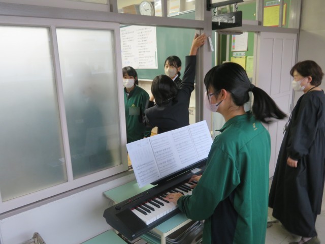 1年生の合唱練習の時間のようすです。クラスみんなの思いを込めて、合唱曲を作り上げています(^^)/