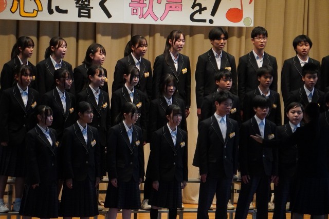 昨日行われた合唱コンクール、3年生のラストステージのようすです。最高の仲間とともに圧巻の熱唱!青春のハーモニーでアリーナが感動としあわせに包まれました!