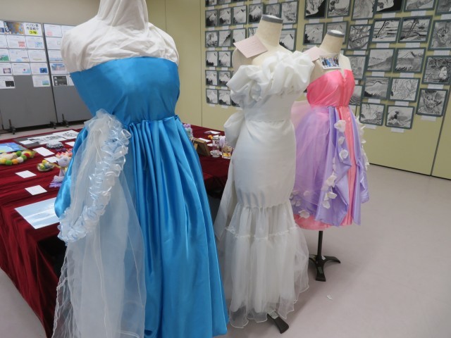 ◇水墨画やクラブ活動の作品等拝見させて頂きましたが、一人一人個性がでており、中学生になると違うな!と感心致しました。また、クラブ活動の作品の中に白いドレスがあり、その胸元のフリル?がとても上手に出来ていて、足を止めて見入っていました。子供達の成長を感じた作品展でした。ありがとうございました!