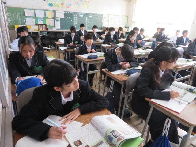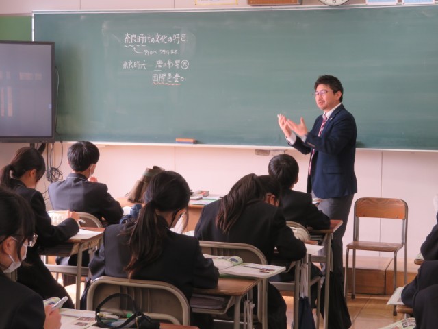 1年生の社会の授業のようすです。「奈良時代の文化にはどんな特徴があるか調べよう」というめあてで学習を進めていました。