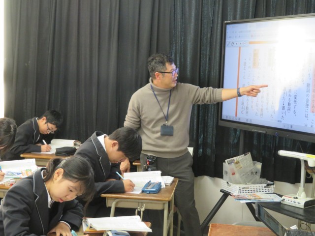 2年生の国語の授業のようすです。「活用表を書けるようになろう」というめあてで学習を進めていました。