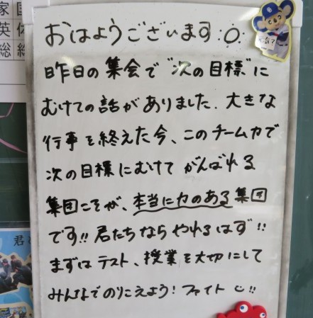 11月11日(火) 次の目標に向かって【2年黒板メッセージ】