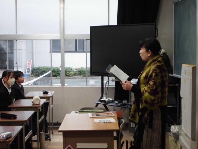 普段の朝読書とは違い、プロジェクターを使った読み聞かせや、迫力ある語りに、教室はあっという間に物語の世界へ。生徒たちはもちろん、聞き入る職員の姿も見られ、学校全体が温かい雰囲気に包まれました。真剣な表情で絵本を見つめ、心を動かされている生徒たちの様子から、この時間がどれほど特別であるかが伝わってきます。