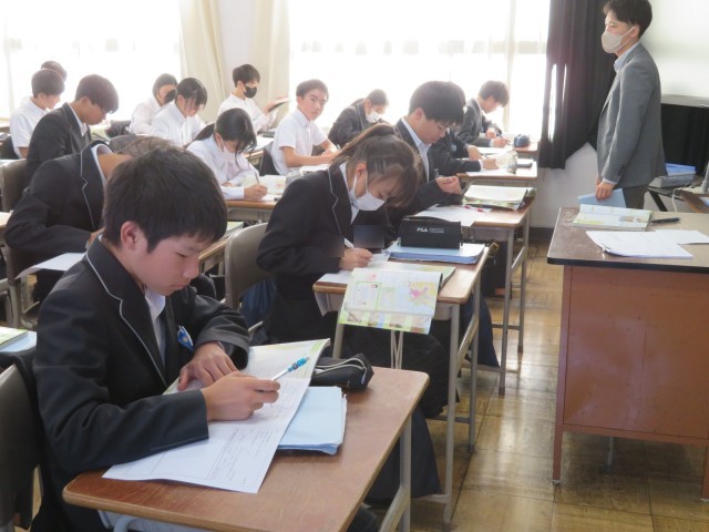 2年生の社会の授業のようすです。「関東地方の特徴を知ろう」というめあてで学習を進めていました。