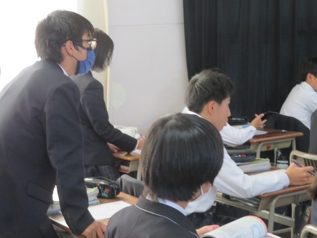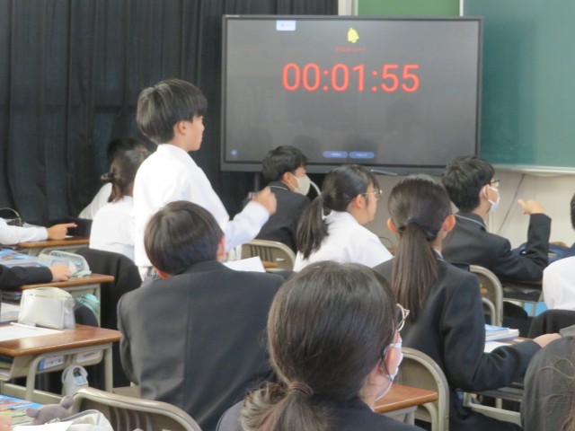 2年生の社会の授業のようすです。中部地方の問題に挑戦した後、みんなで解答について確認をしていました。不確かだったところをしっかりと覚えなおすことができましたね。