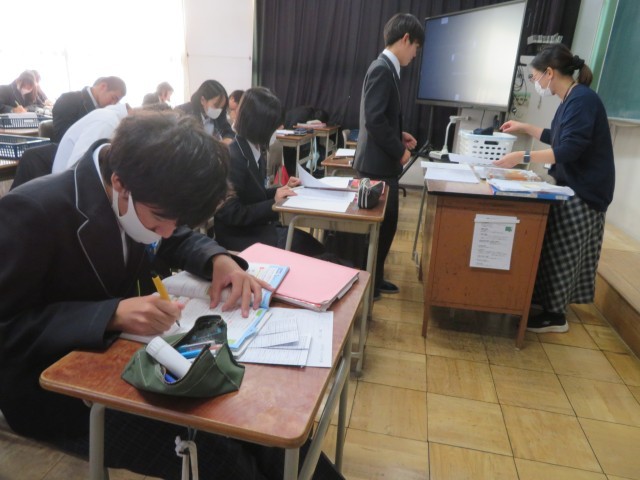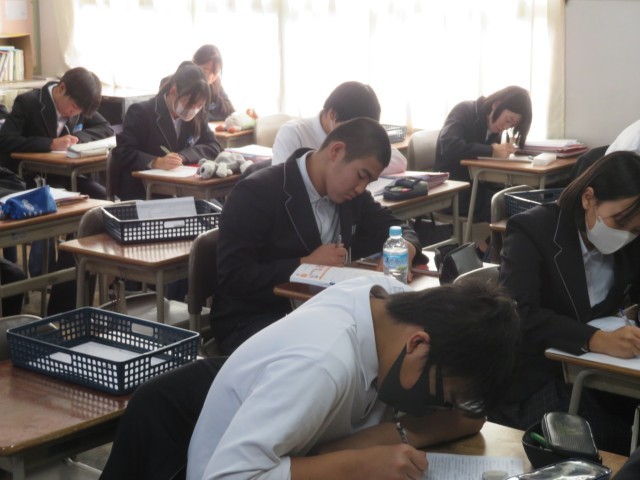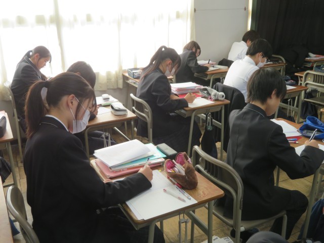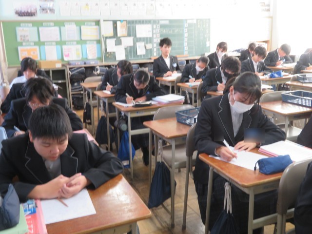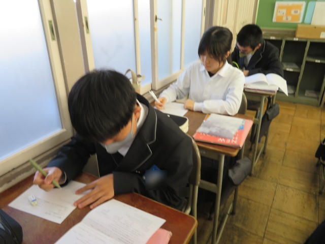 2年生の英語の授業のようすです。テストに向けてとても集中して問題に取り組んでいて立派でしたね。学力を伸ばす期間になるように応援していますよ(^^)/