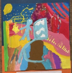 1年生「色彩や形の調和を考えて完成させよう」というめあてで取り組んだ、「文字が生み出すイメージ」をテーマとした作品です。作者の伝えたかったイメージを感じながらお楽しみください。