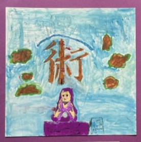 1年生「色彩や形の調和を考えて完成させよう」というめあてで取り組んだ、「文字が生み出すイメージ」をテーマとした作品です。作者の伝えたかったイメージを感じながらお楽しみください。