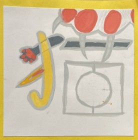 1年生「色彩や形の調和を考えて完成させよう」というめあてで取り組んだ、「文字が生み出すイメージ」をテーマとした作品です。作者の伝えたかったイメージを感じながらお楽しみください。