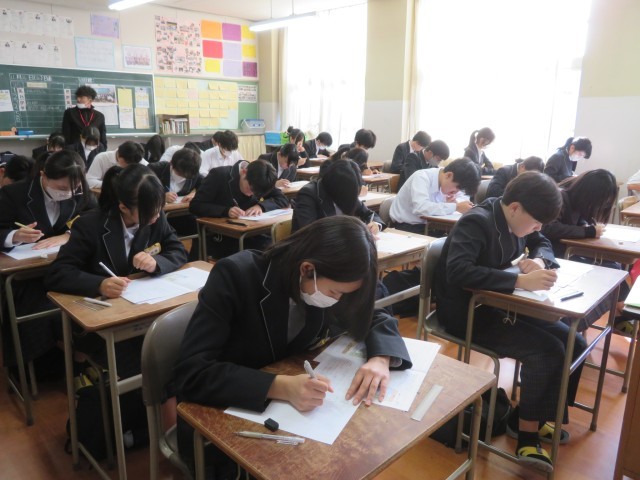3年生の2時間目、社会のテストのようすスナップです!みんな頑張っていましたね。