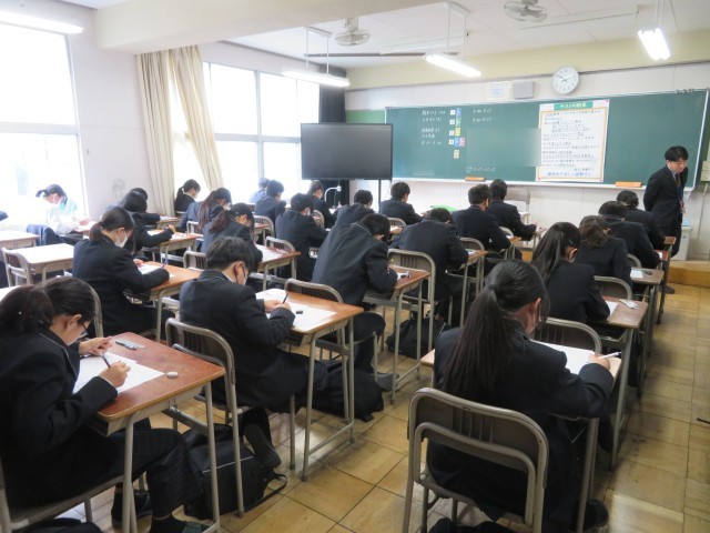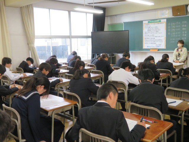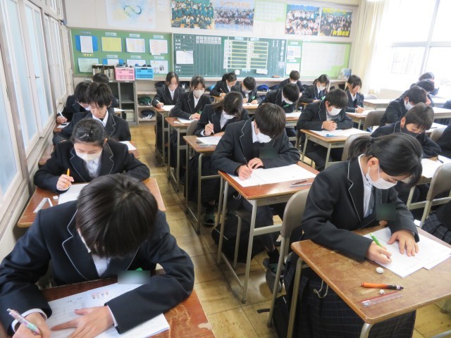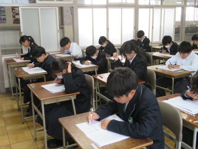 1年生の2時間目、英語のテストのようすスナップです!みんな頑張っていましたね。