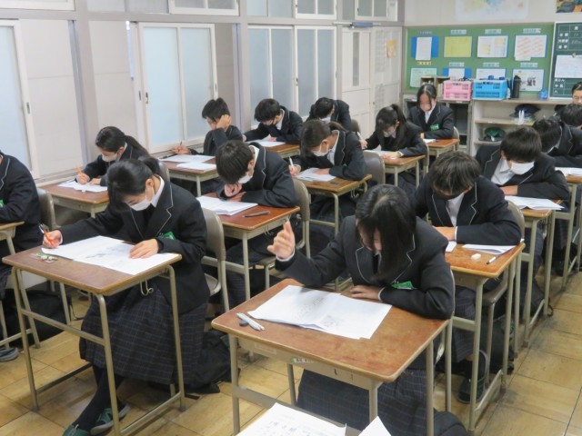 1年8組の1時間目、社会の期末テストのようすです。みんなとても集中して取り組めていました。実力を全部出し切れるように応援しています!