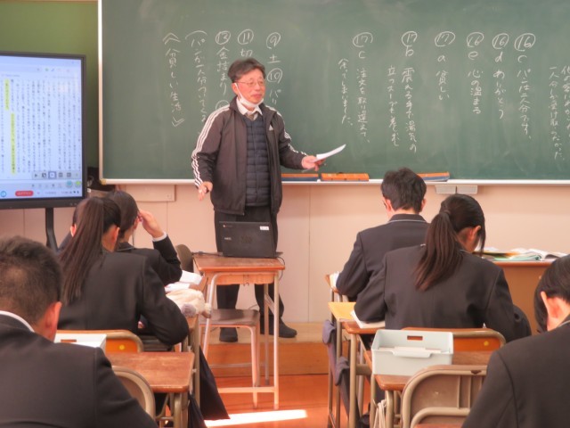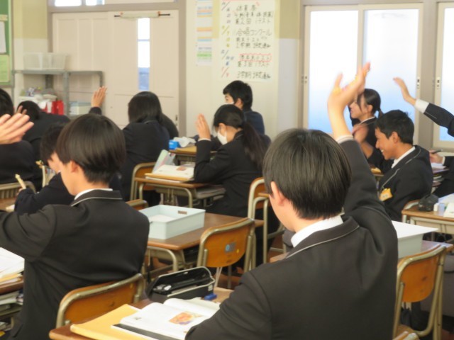 3年生の国語の授業のようすです。温かいスープの文章について、「筆者の体験と意見を読み取り、自分の考えをもとう」というめあてで学習を進めていました。