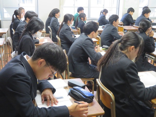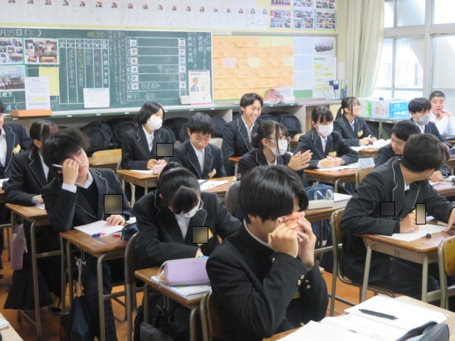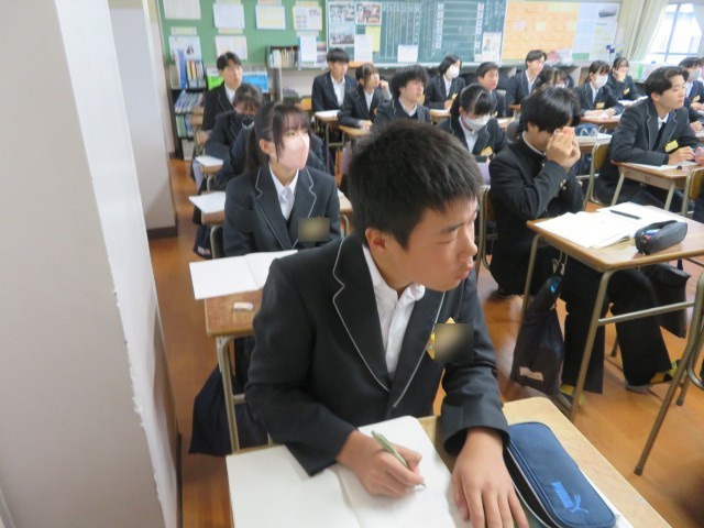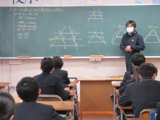 3年生の数学の授業のようすです。「平行線にはさまれた線分の比を求めよう」というめあてで学習を進めていました。相似な図形を見つけて考えることができましたね。