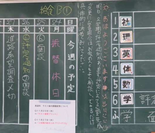 11月25日(火) よく相談して【3年黒板メッセージ】