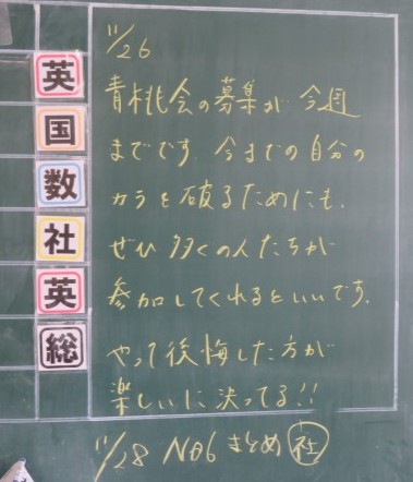 11月26日(水) 楽しいに決まってる!【2年黒板メッセージ】