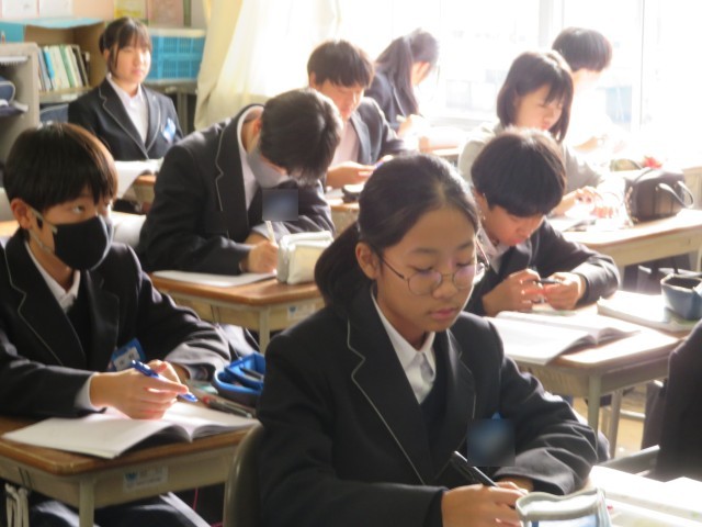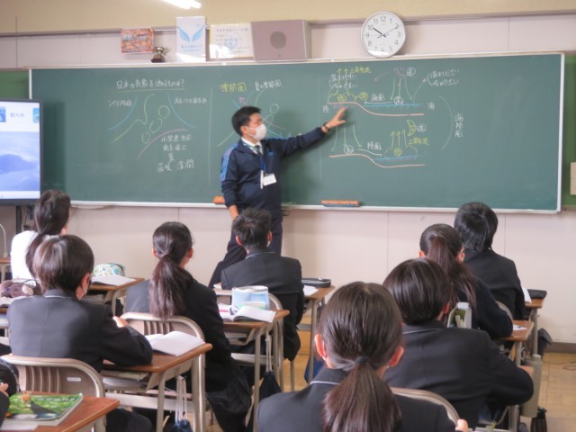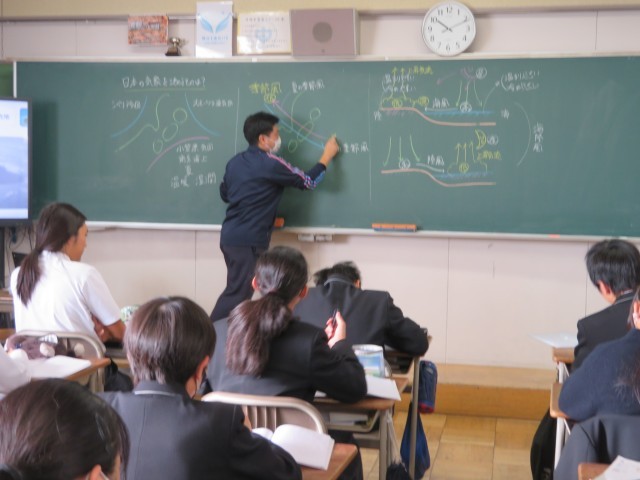 2年生の理科の授業のようすです。「日本の気象を決めるものは?」というテーマで学習を進めていました。