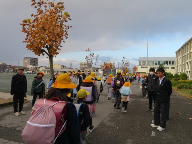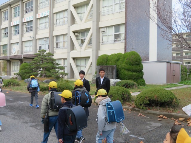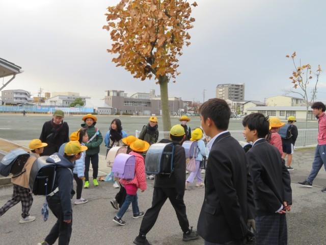11月28日(金) 小中合同あいさつ運動 最終日! 笑顔と元気があふれる朝【末広小】