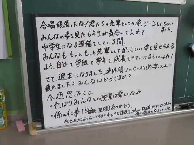 11月28日(金) じーんとしました【1年黒板メッセージ】