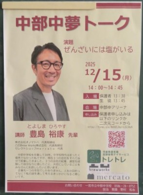11月30日(日) 中中夢トーク『ぜんざいには塩がいる』 公開日 2025/11/30 更新日 2025/11/30 お知らせ tetoruでもお知らせしました今年度の中中夢トークが近づいてきました。保護者の方もぜひお子さんと一緒に講演を聴いてみませんか?申し込みをお待ちしています。