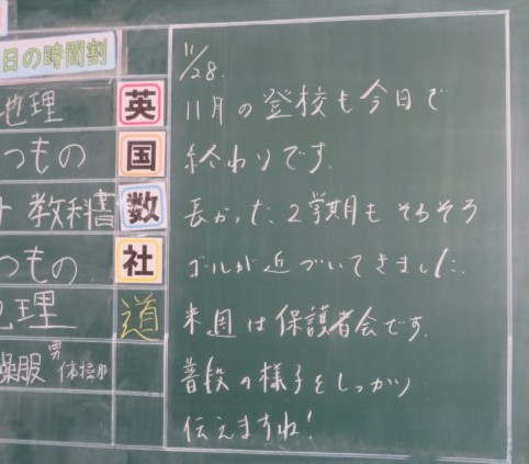 11月28日(金) 日常を大切に【2年黒板メッセージ】