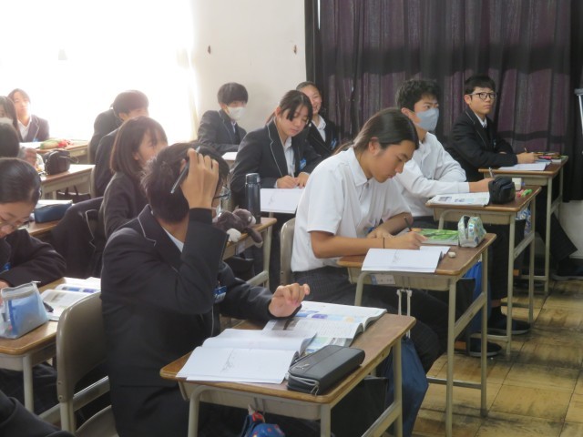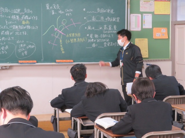 2年生の理科の授業のようすです。「日本の気候の特徴をまとめよう」というめあてで学習を進めていました。