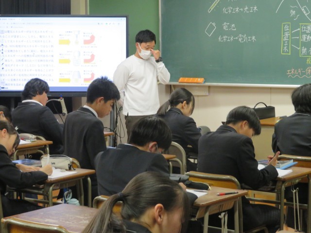 昨日アップできなかった3年生の理科の授業を紹介します。「化学エネルギーについて知ろう」というめあてで学習を進めていました。