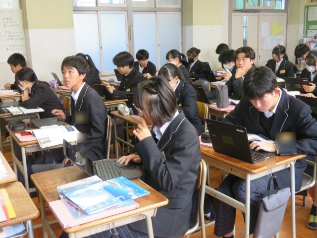 3年生の英語の授業のようすです。本文の内容の理解度を調べるための問題に挑戦していました。しっかり読み取った内容を表現することができましたね。