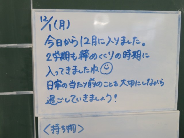 12月1日(月) いよいよ12月です!【1年黒板メッセージ】