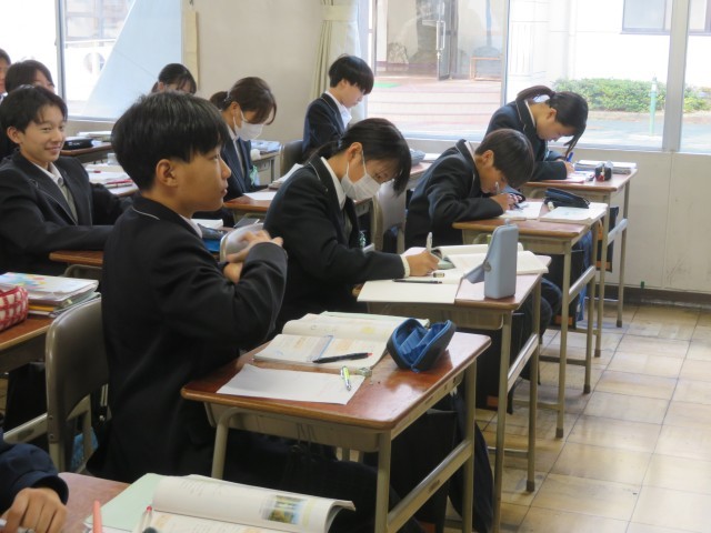 1年生の数学の授業のようすです。「直線について学ぼう」というめあてで学習を進めていました。小学校で学んだことを確認しながら、数学の用語や記号を学びました。平面図形の基礎をしっかりと身につけていきましょう!