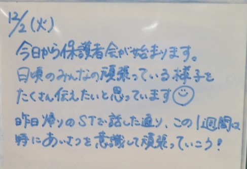 12月2日(火) あいさつがんばろう【1年黒板メッセージ】